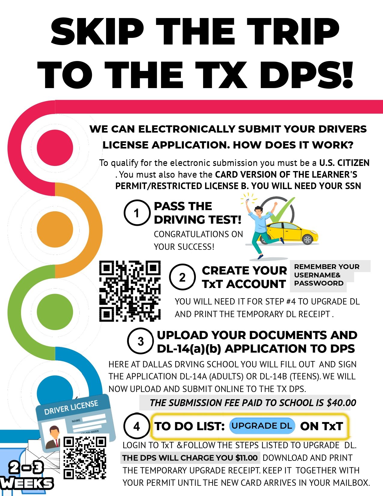 - Must have a Printed Impact Video Certificate (This is a DPS requirement for taking a Driving Test).